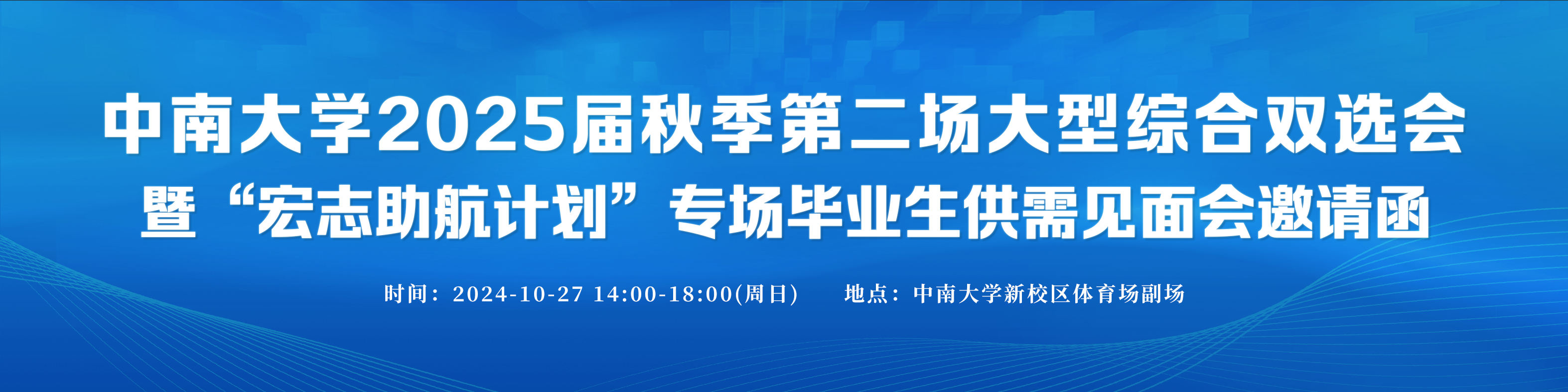 中南大學2025屆畢業生“宏志助航計劃”系列小型雙選會(考研后專14:00-17:00